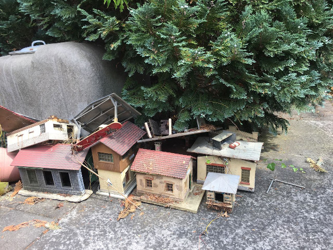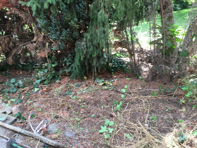 Nach einigen Jahren "Sparbetrieb" und der Tatsache, daß Mutter Natur sich ihr Terrain wieder geholt hatte, ließ nach einigen Jahren Ideen reifen, was bedeutet, daß das ursprüngliche Konzept einer Gartenbahn über den Haufen geworfen wurde. Zunächst mußte im Garten erst mal gründlich aufgeräumt werden. Das sah dann so aus...